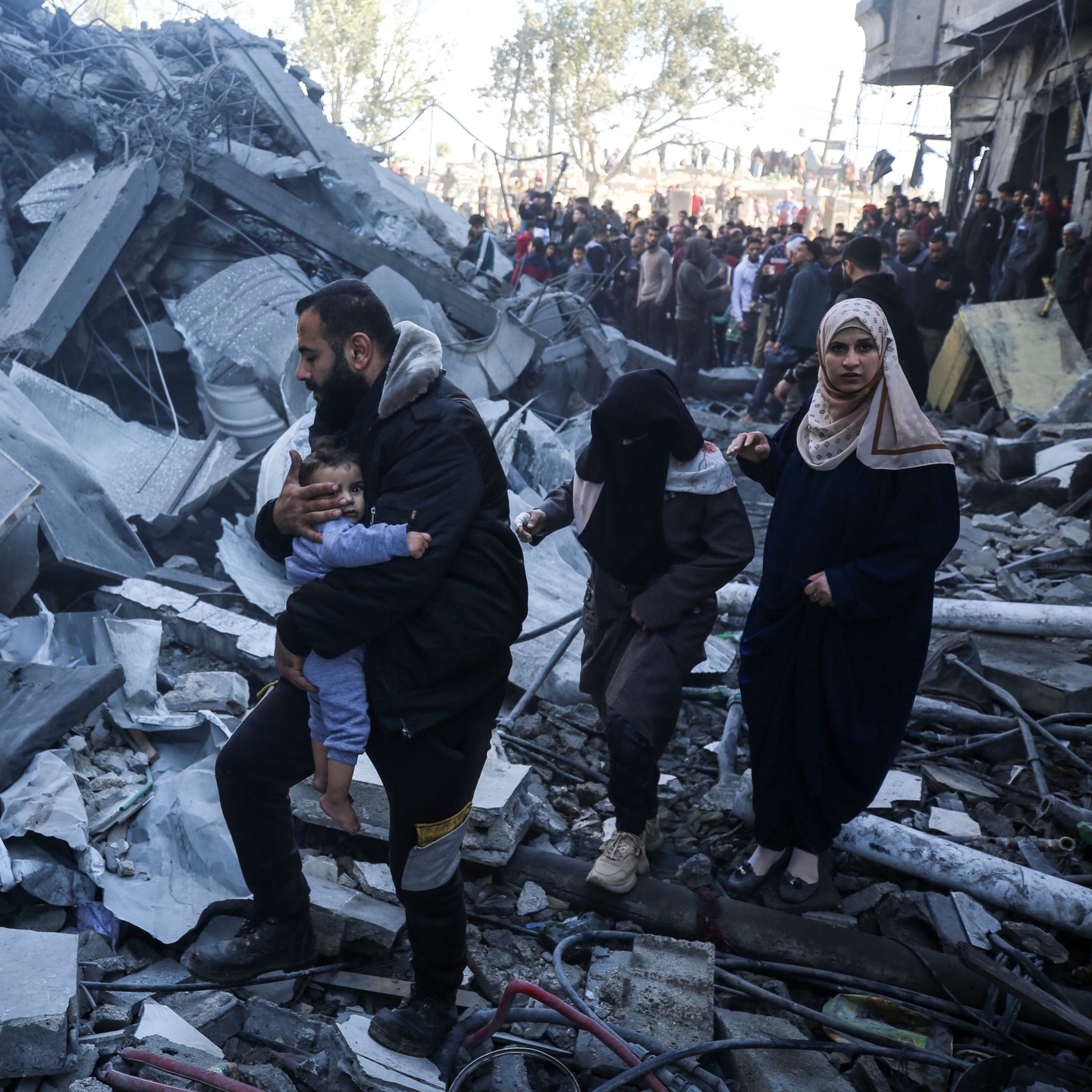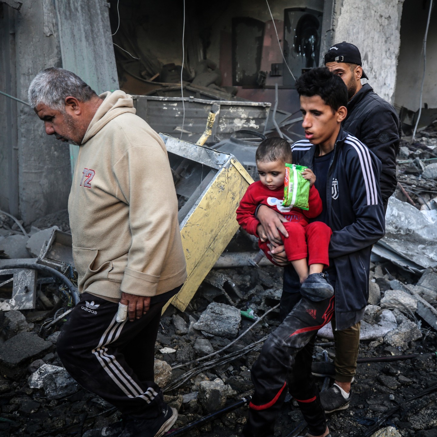 انتشال أطفال من تحت ركام المنازل التي قصفت ليلة أمس في مخيم النصيرات. Children were retrieved from under the rubble of houses that were bombed last night in Nuseirat camp.