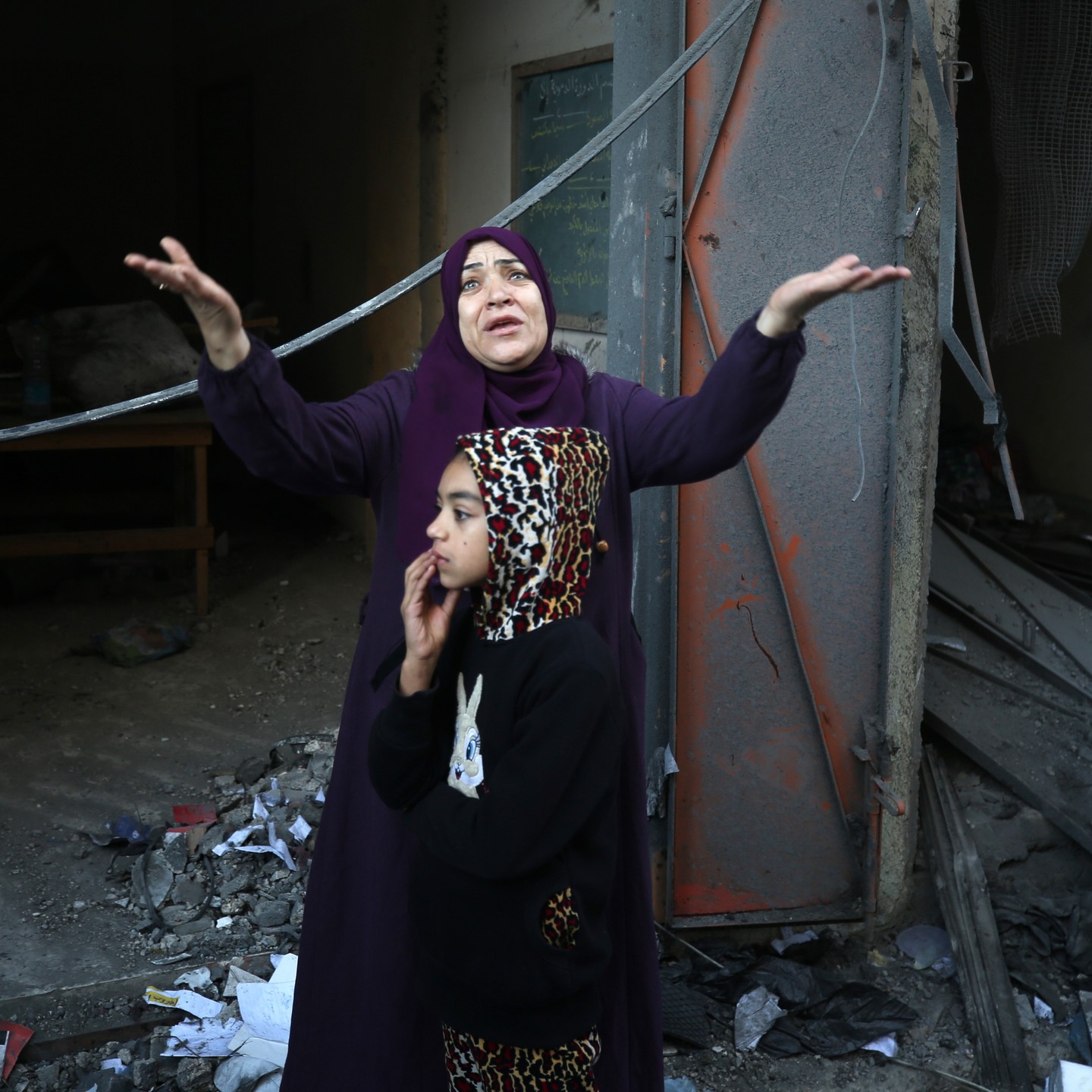 Palestinians inspect damage at the site of an Israeli strike on a house, at the Nuseirat refugee camp in the central Gaza Strip, December 13, 2024. photo by majdi fsthi