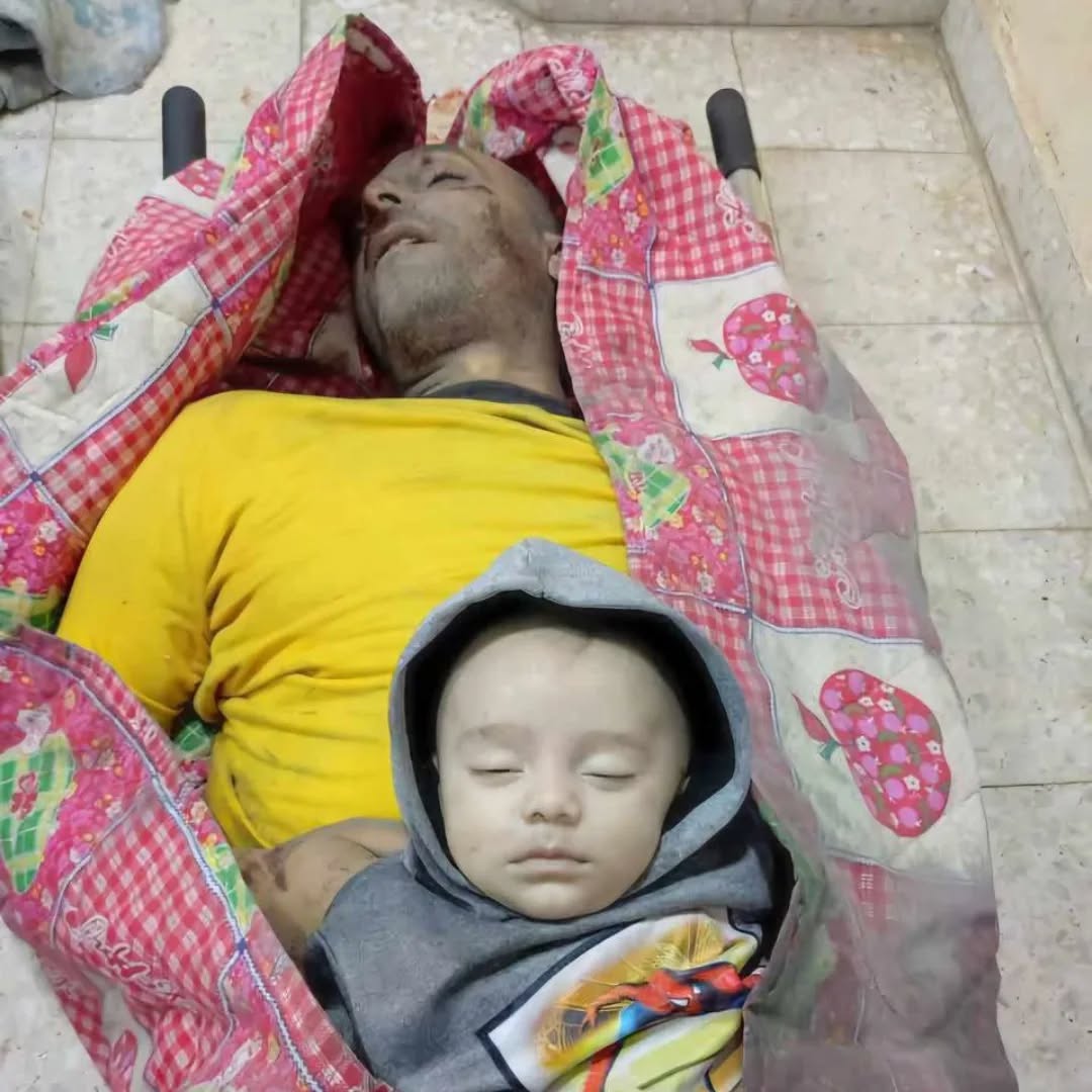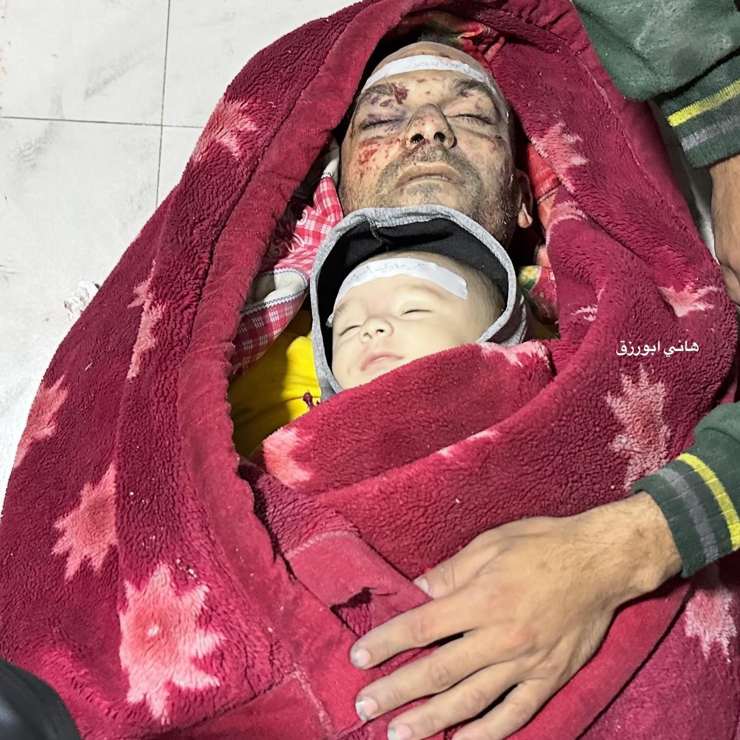 A father and his little kid are among the victims of the deadly Israeli massacre in Nuseirat refugee camp last night.