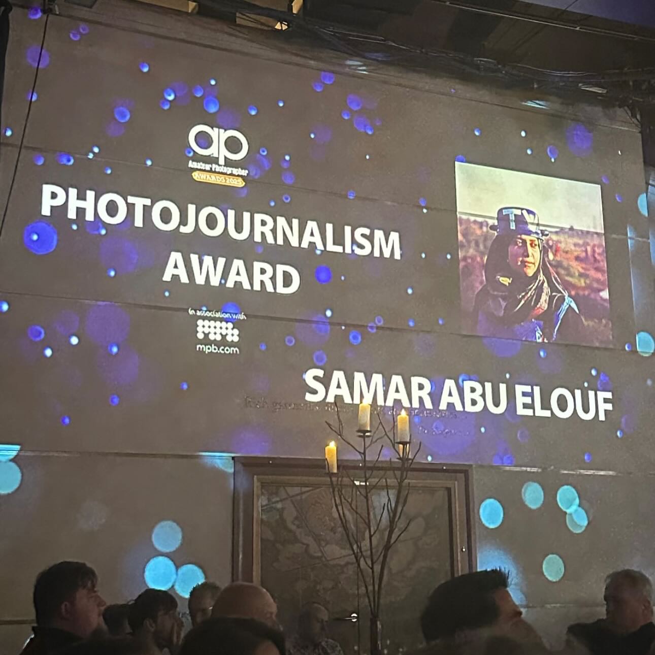 Our Photojournalism Award than the Palestinian photographer Samar Abu Elouf.