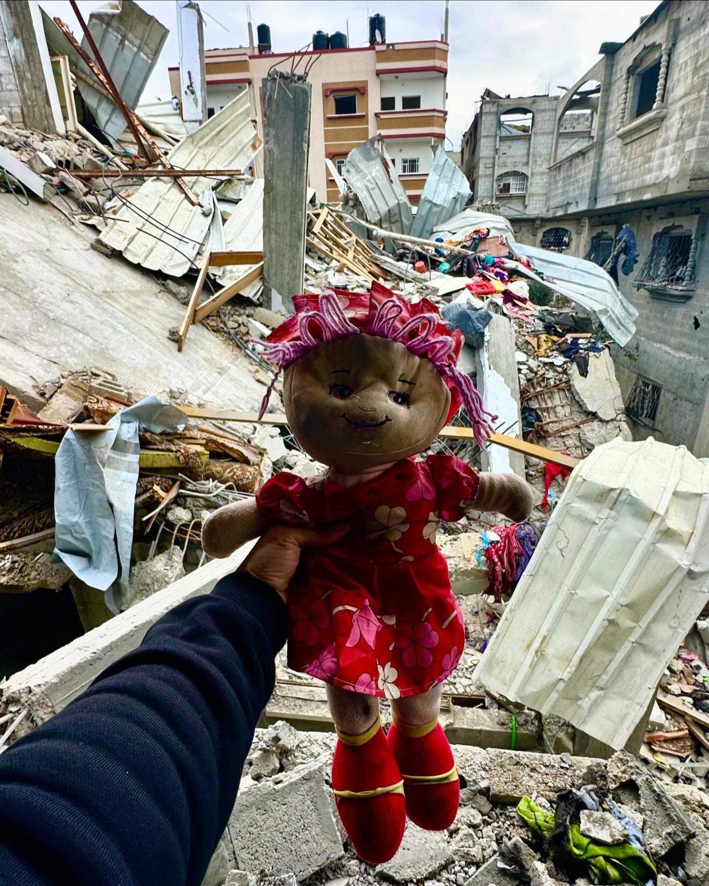 صباح اليوم في مهمة عمل في حي التفاح شرق مدينة غزة وبين ركام المنزل المستهدف وجدت لعبة طفلة شهيدة قتلتها اسرا.ئيل صباحاً وقتلت طفولتها معها وطفولة المئات من أطفال غزة الذين لا زالو يقتلون و يعيشون الموت بكافة أشكاله أمام مسمع ومرأى العالم الصامت 💔😞