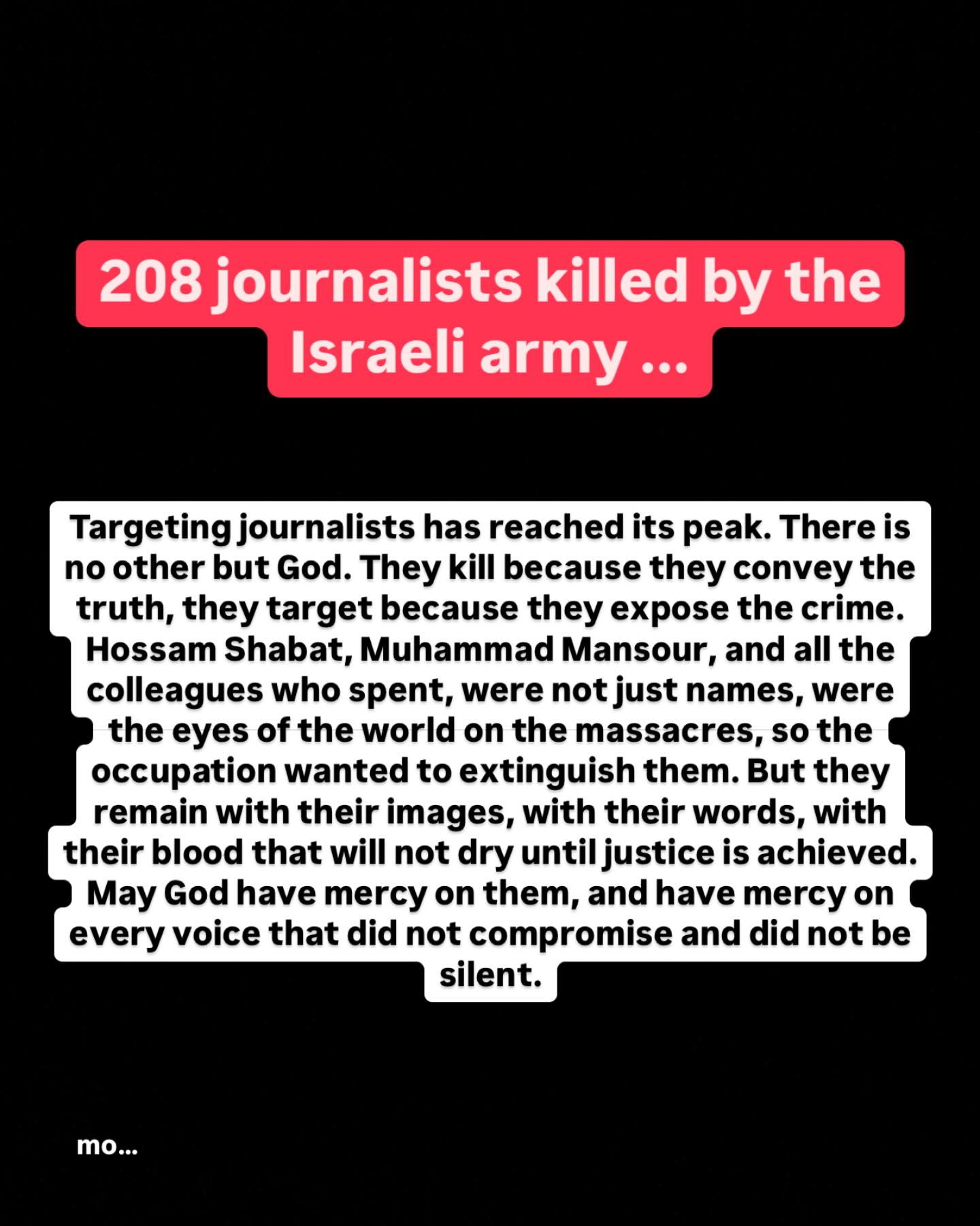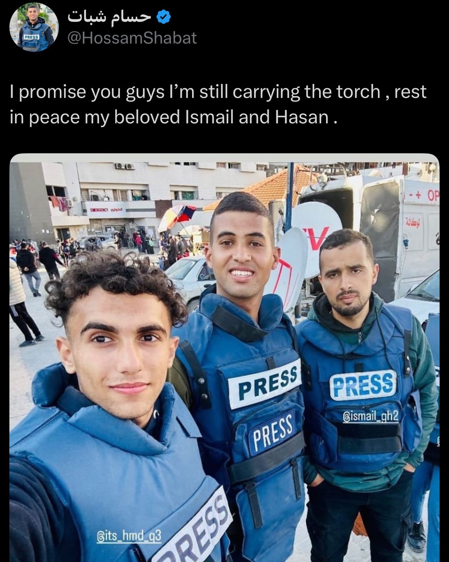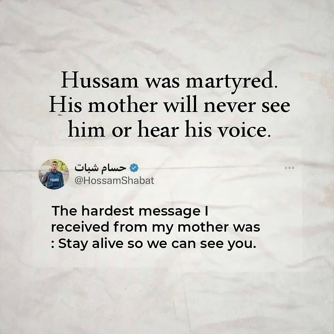 By God, I fulfilled my duty as a journalist. I risked everything to report the truth, and now, I am finally at rest—something I haven’t known in the past 18 months . I did all this because I believe in the Palestinian cause. I believe this land is ours, and it has been the highest honor of my life to die defending it and serving its people.