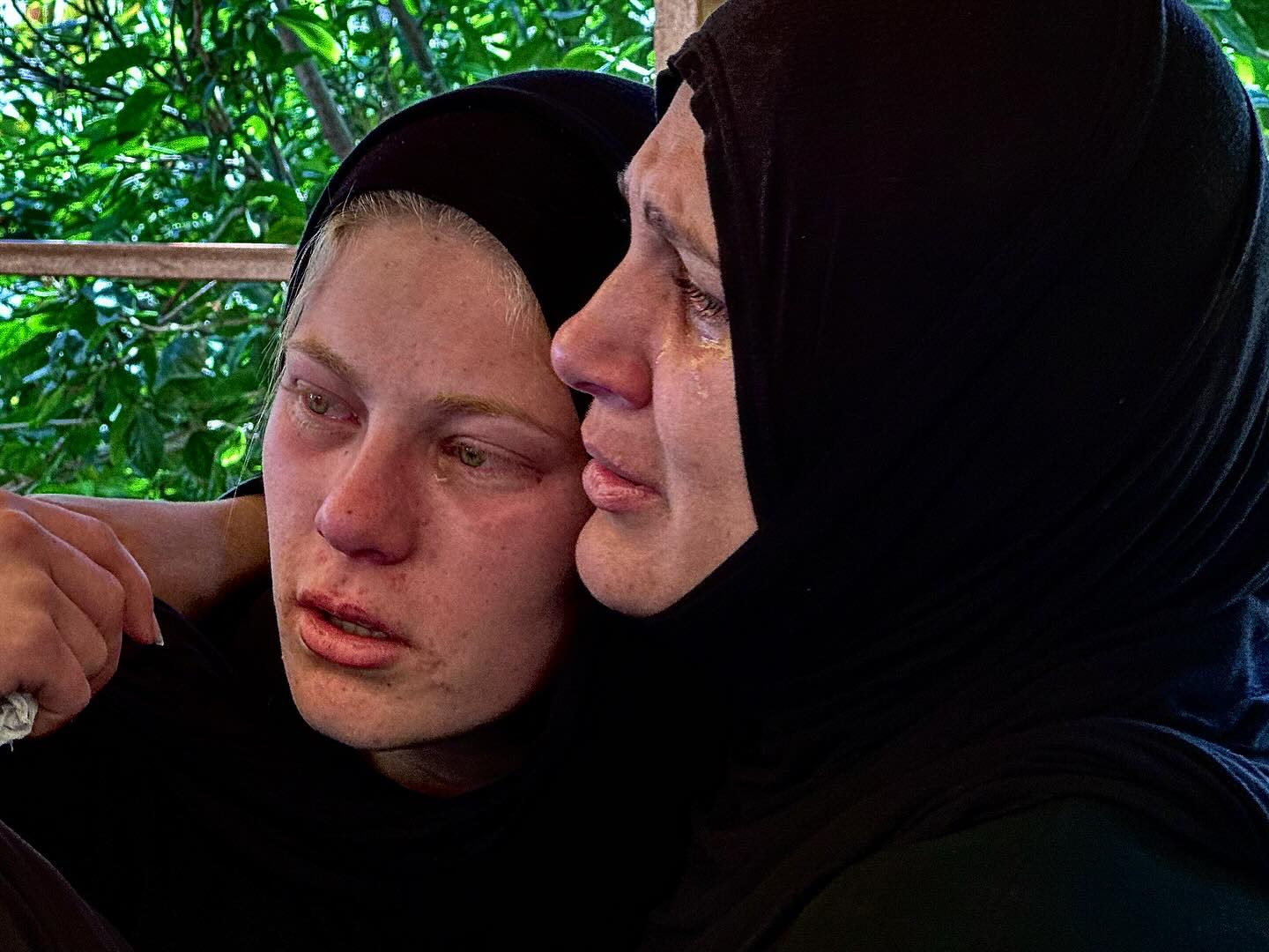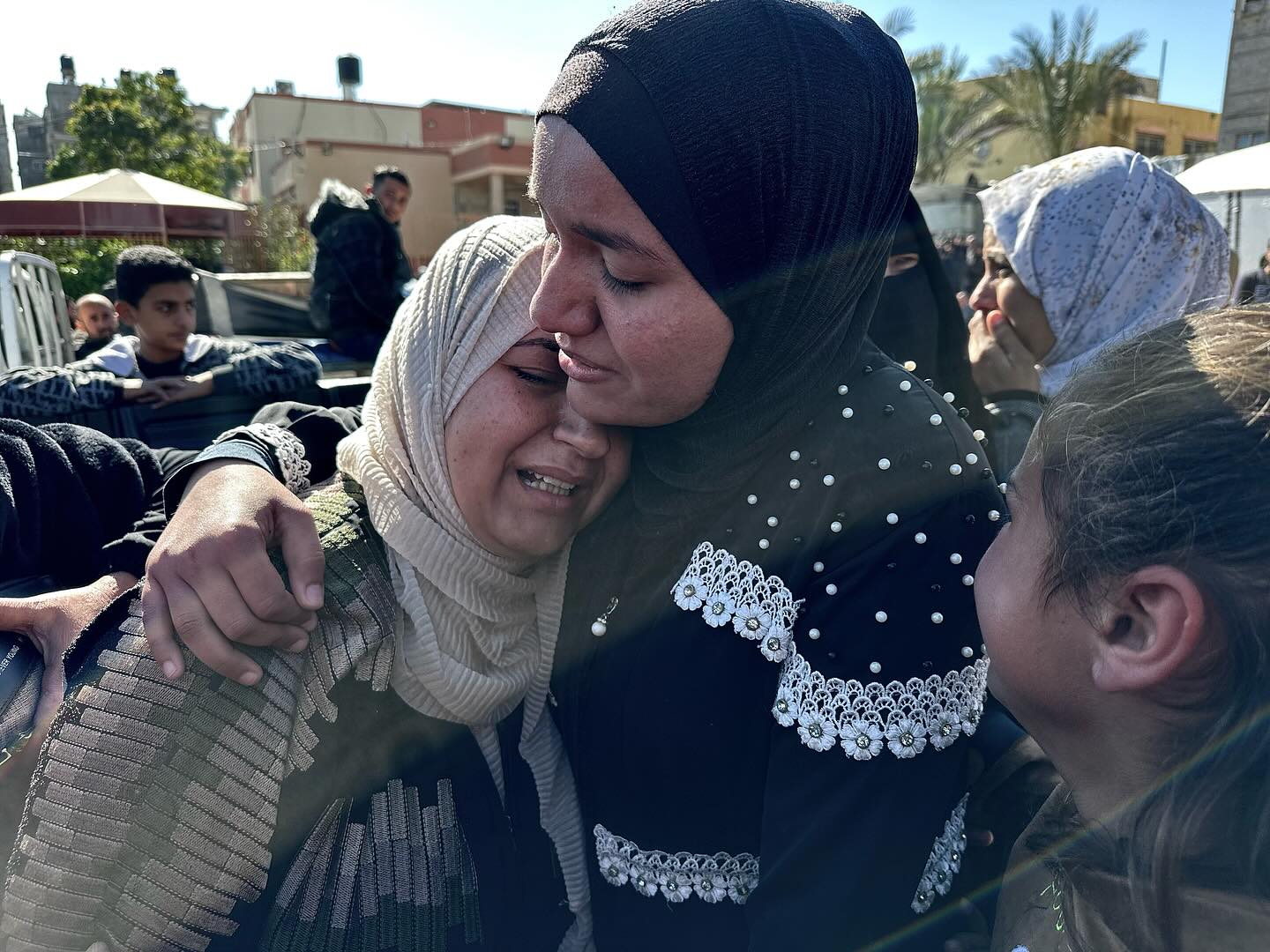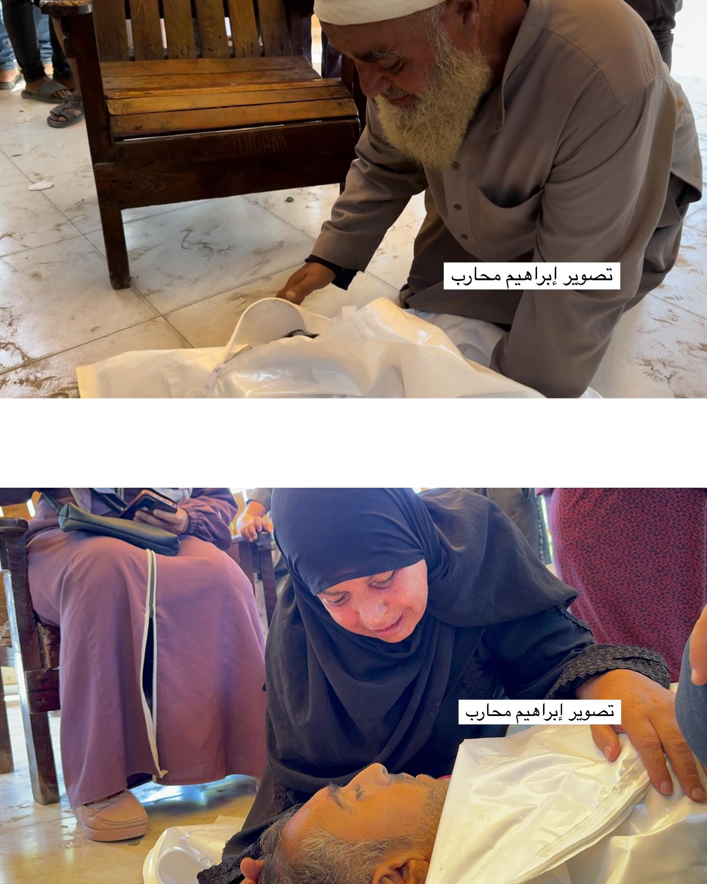 في هذه الصورة يظهر الشيخ جمال أبو سمرة وزوجته صباح أبو سمرة وهم يقومون بوداع ابنهم محمد الذي استشهد خلال الحرب بتاريخ 14/8/2024.