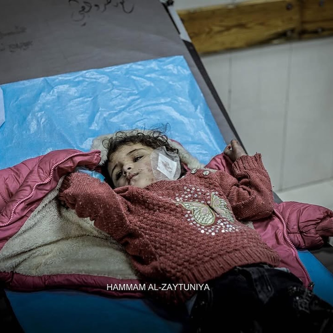 The blind little girl Mayar Najjar (3) was in the Israeli air strike that targeted her home in Khan Younis. By @hammam.younis الطفلة الكفيفة ميار النجار ذات الـ3 أعوام أصيبت في قصف الإحتلال منزلها في خانيونس.