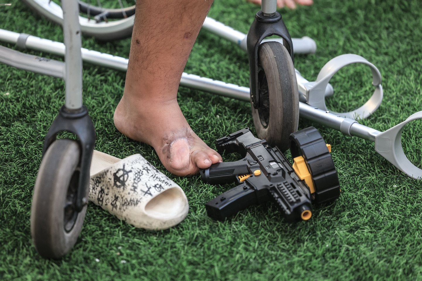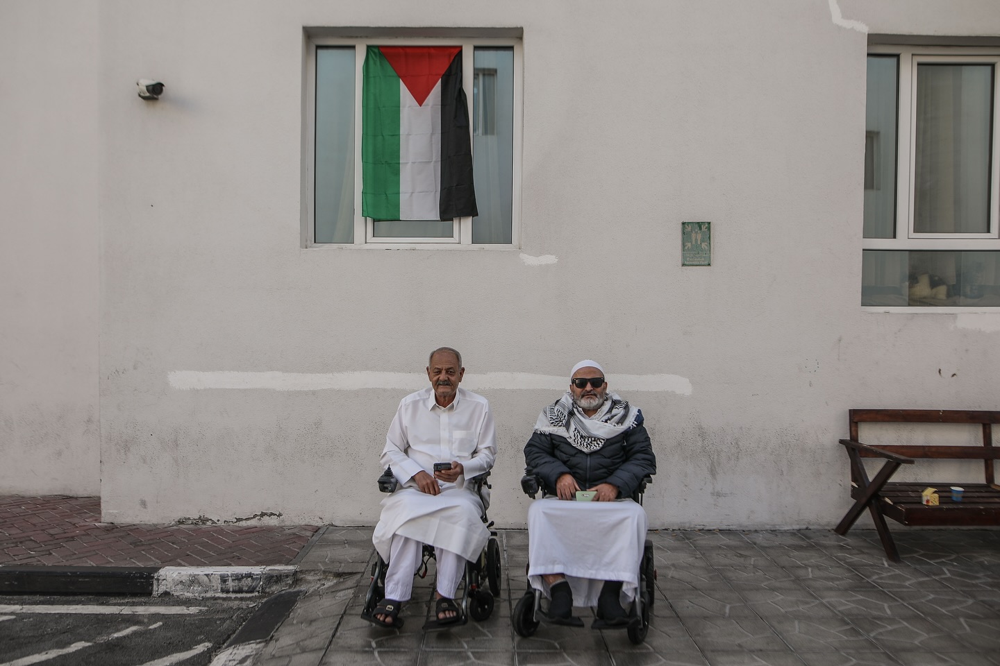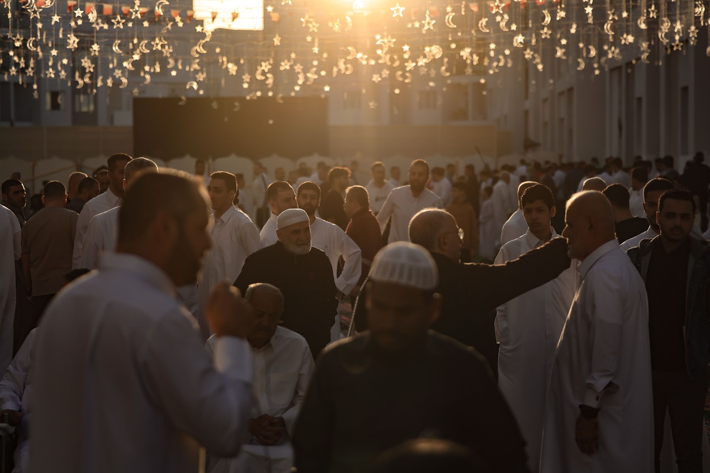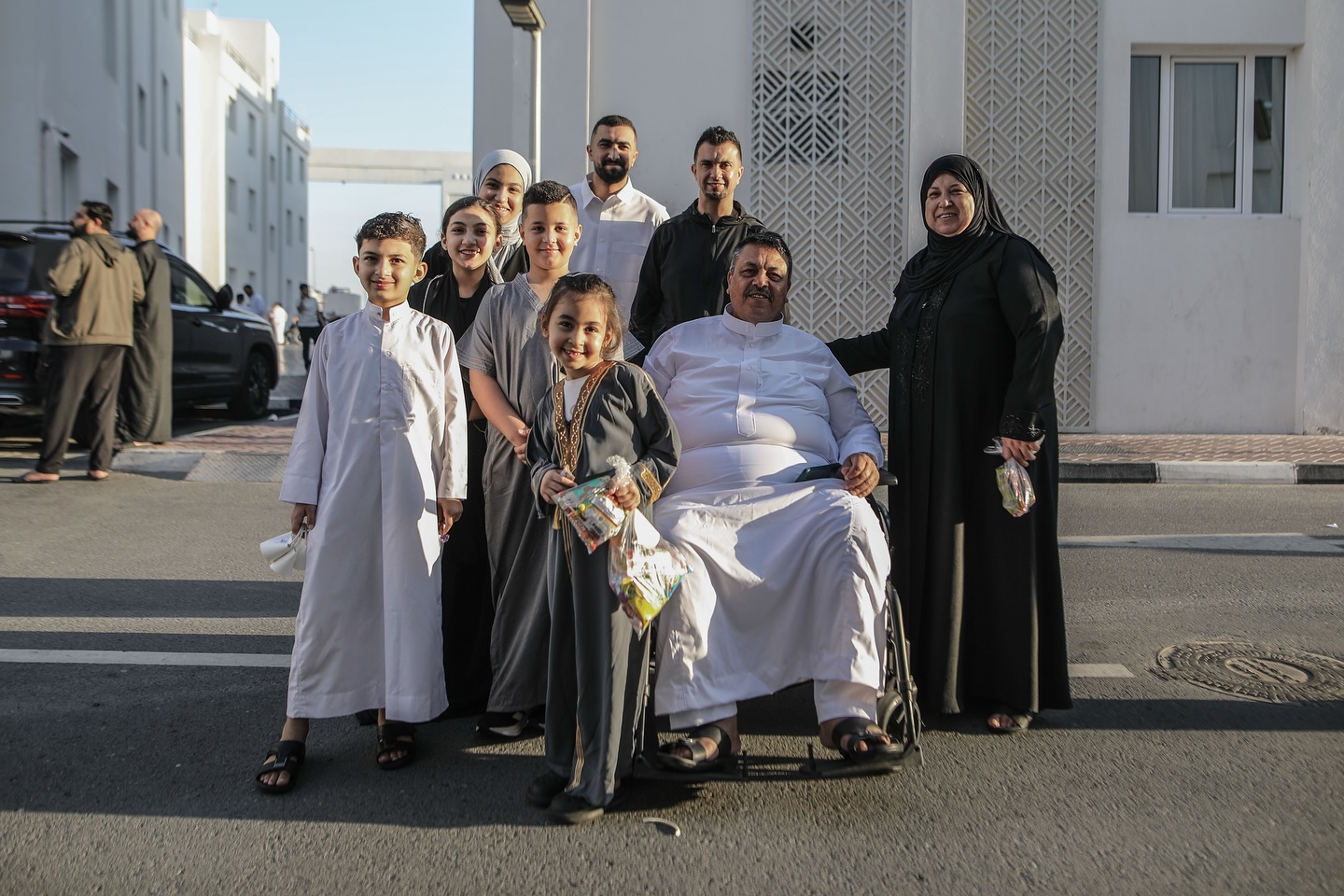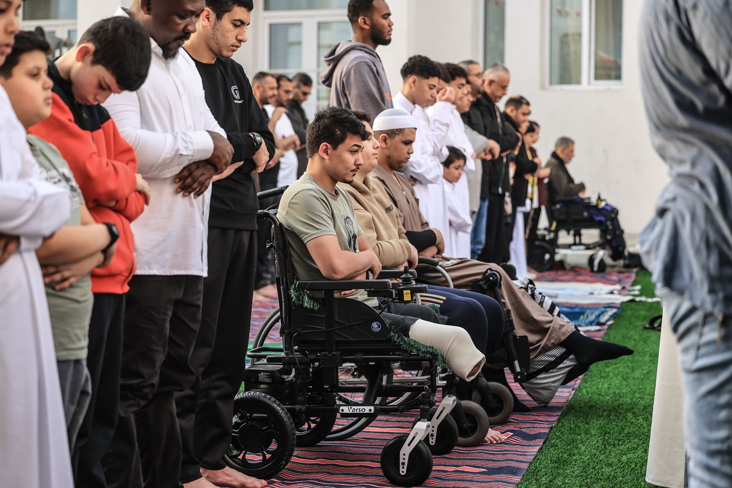 Dozens of wounded Palestinians with amputated limbs performed Eid prayers at Al-Thumama Complex in Doha Photo:Belal Khaled