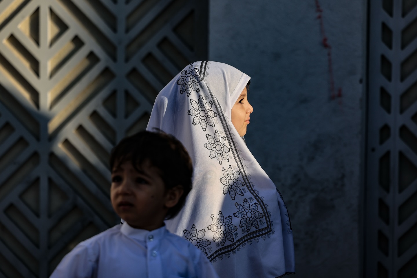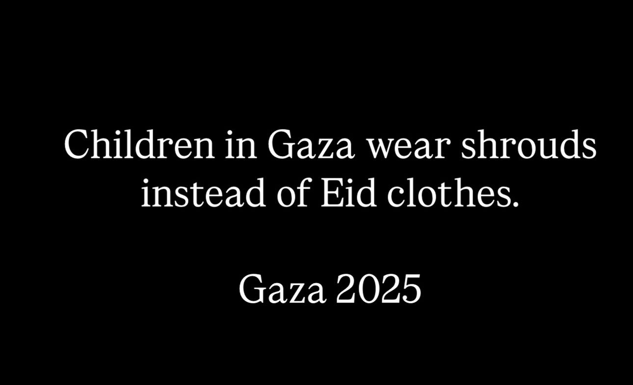 Children in Gaza wear shrouds instead of Eid clothes. Gaza 2025
