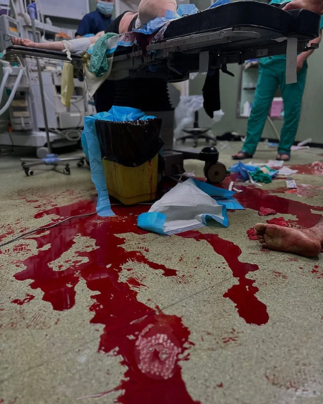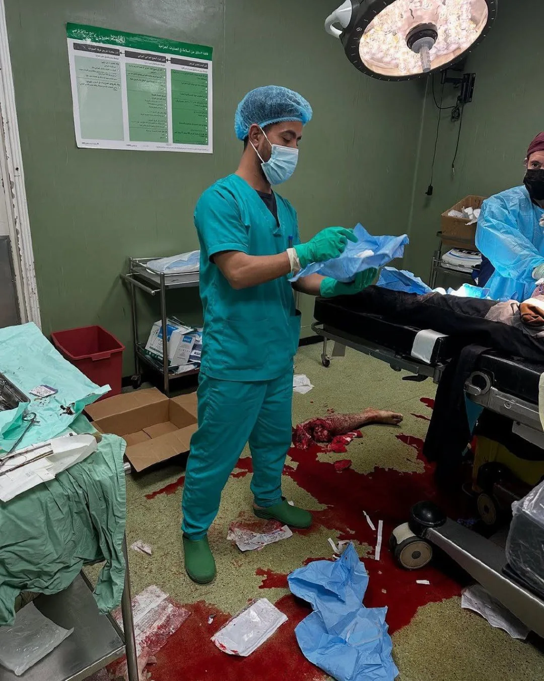 Graphic Content | Scenes from Gaza’s overwhelmed hospitals. Amid ongoing heavy Israeli airstrikes, hospitals in Gaza continue to receive waves of severely wounded civilians. Doctors, working with minimal resources, are forced to perform life-saving amputations under dire conditions. #غزة_تحت_القصف #غزة_تُباد
