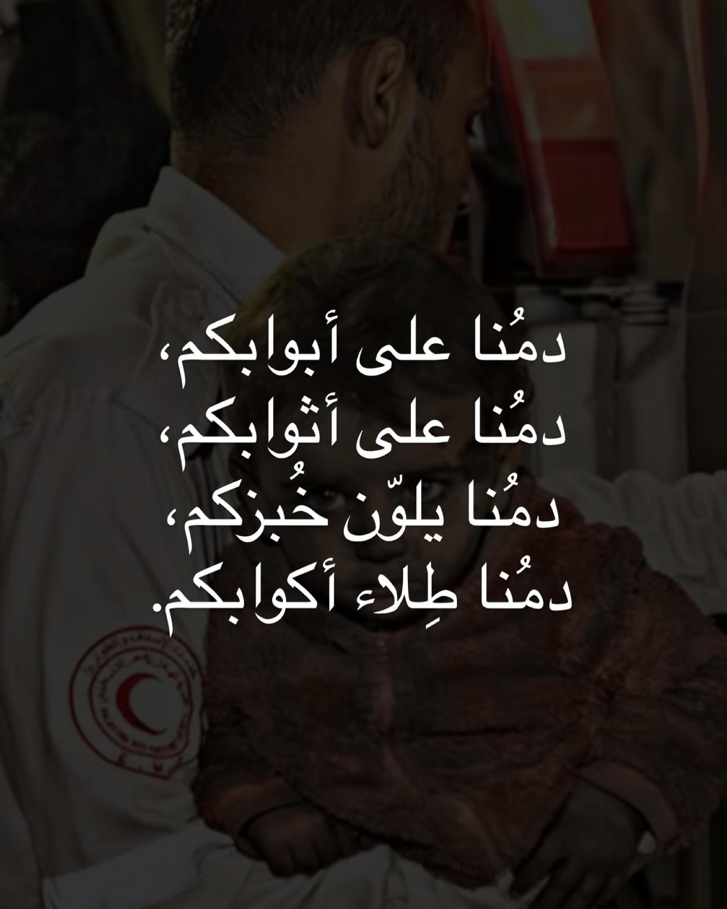 دمُنا على أبوابكم، دمُنا على أثوابكم، دمُنا يلوّن خُبزكم، دمُنا طِلاء أكوابكم.