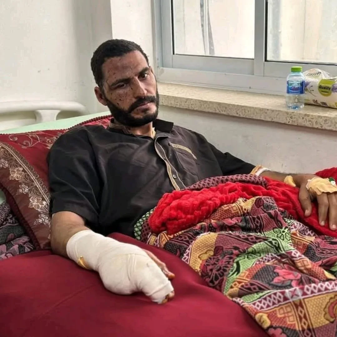 Wounded Palestinian journalist Hassan Eslaih was among the journalists targeted by Israeli aircraft last night at Nasser Hospital, resulting in the amputation of two fingers and a skull fracture. Nine other journalists were critically injured, and one was killed. The Israeli army claims that the attack on the journalists’ tent specifically targeted Eslaih, accusing him of being a Hamas member. #غزة_تحت_القصف #غزة_تُباد #الصحافة_تحترق