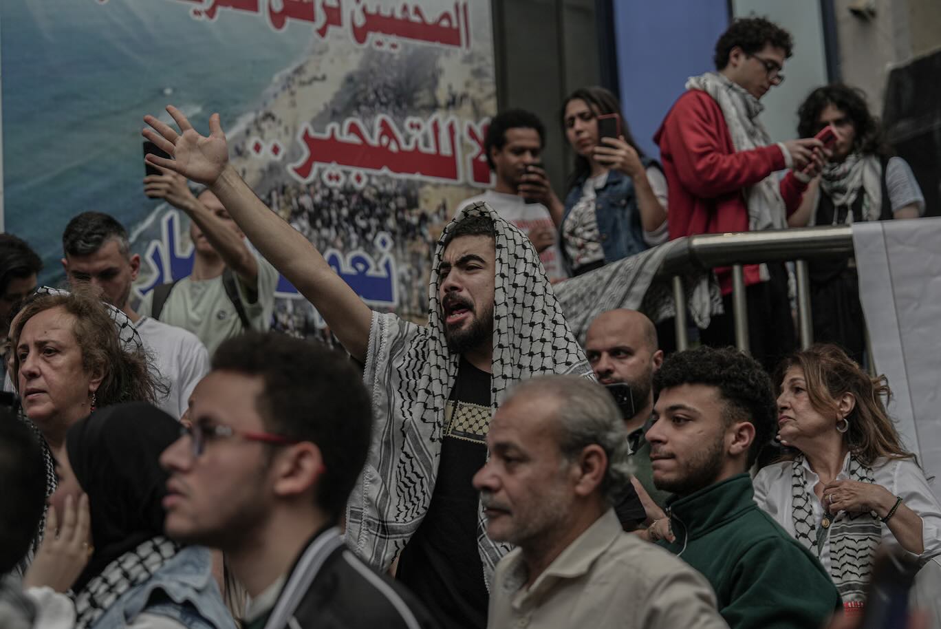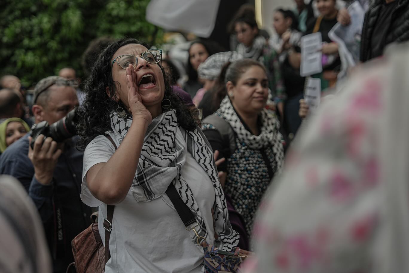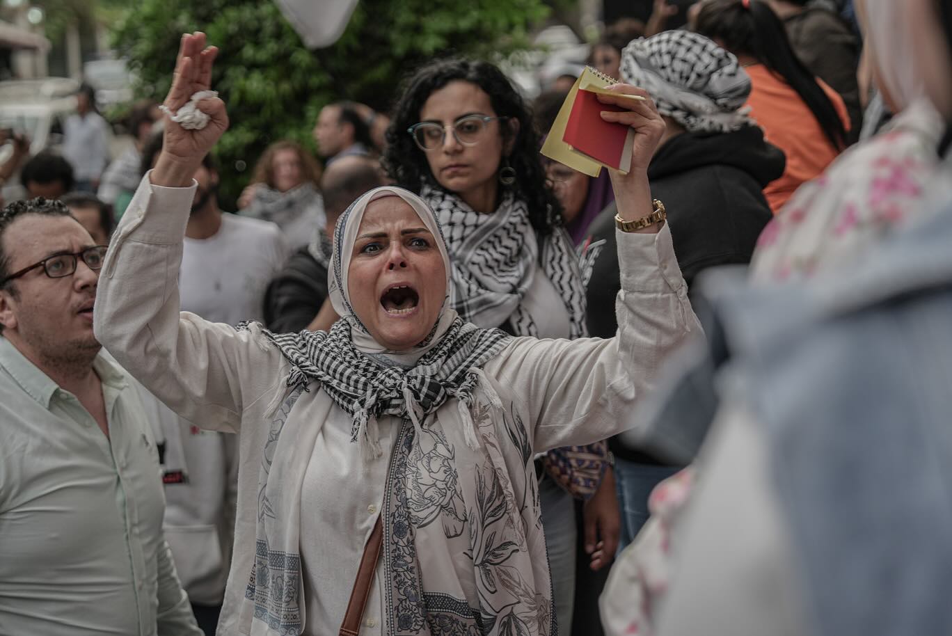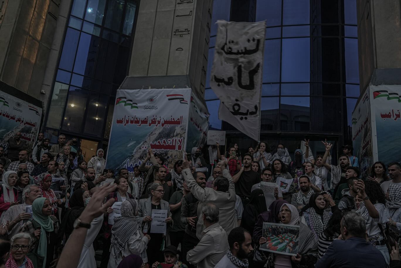 Egyptian protesters hold a vigil against displacement and the Israeli war on the Gaza Strip at Cairo Journalists Syndicate on April 8, 2025 By : @sami97alsultan متظاهرون مصريون ينظمون وقفة احتجاجية ضد التهجير والحرب الإسرائيلية على قطاع غزة في نقابة الصحفيين بالقاهرة بتاريخ 8 أبريل 2025
