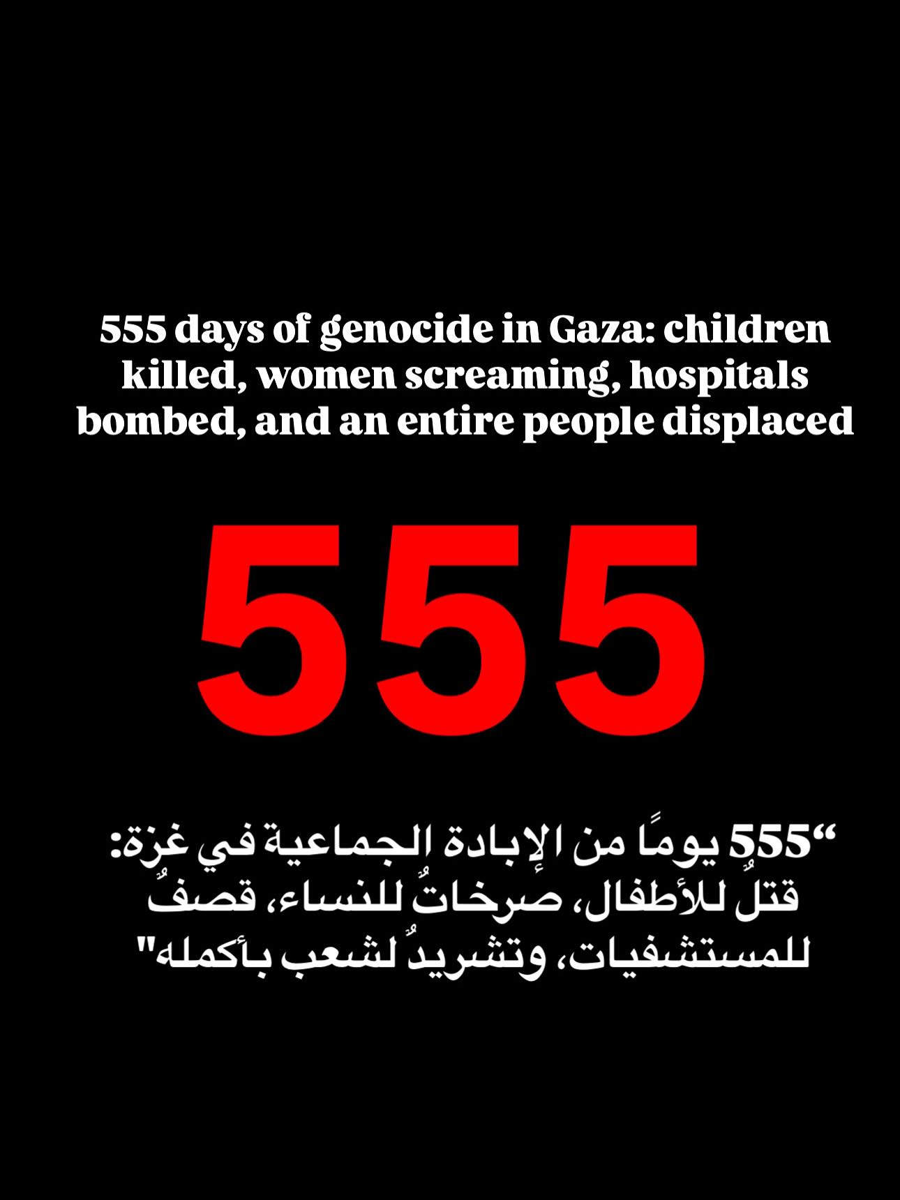 “555 يومًا من الإبادة الجماعية في غزة: قتلٌ للأطفال، صرخاتٌ للنساء، قصفٌ للمستشفيات، وتشريدٌ لشعب بأكمله"