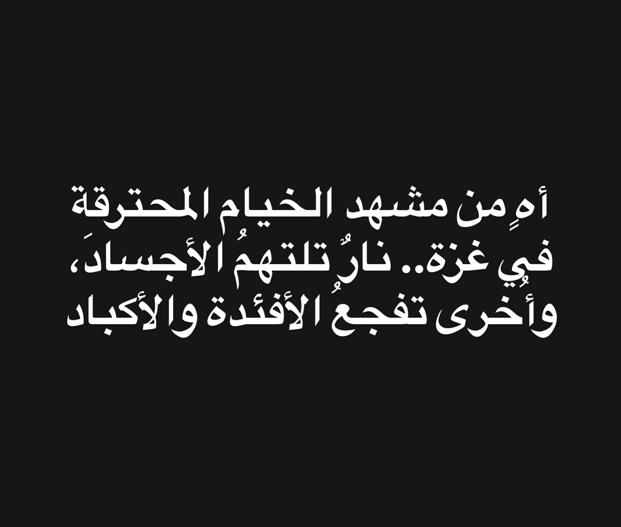هكذا يُحرَق أطفالنا وهم نيام في خيام النازحين... لا مناطق آمنة، ولا ناجين من هذه الإبادة الجماعية. تتعرض مدينة غزة وشمالها منذ ساعات لقصف عنيف بالأحزمة النارية والقذائف المدفعية الإسرائيلية.