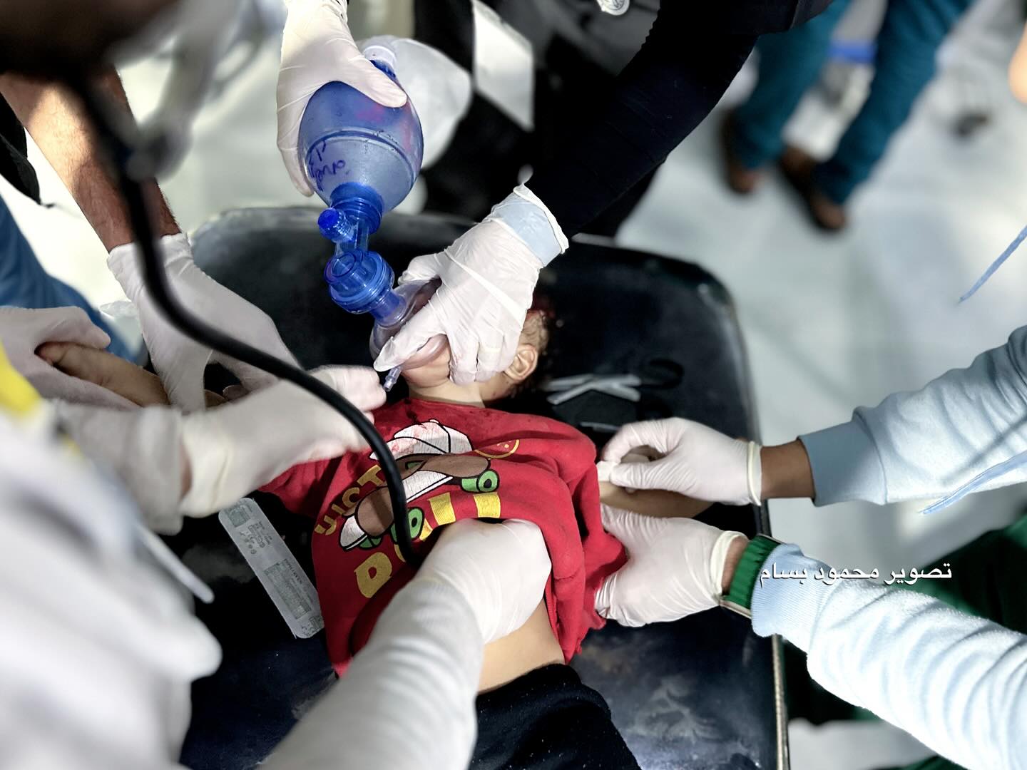 Several injuries, including children, have arrived at Al-Kuwait Hospital in Khan Younis following the bombing of a residential apartment in the Al-Ma’skar area in southern Gaza Strip وصول عدد من الإصابات بينهم أطفال إلى مستشفى الكويت بخان يونس عقب قصف شقة سكنية في منطقة المعسكر جنوب قطاع غزة