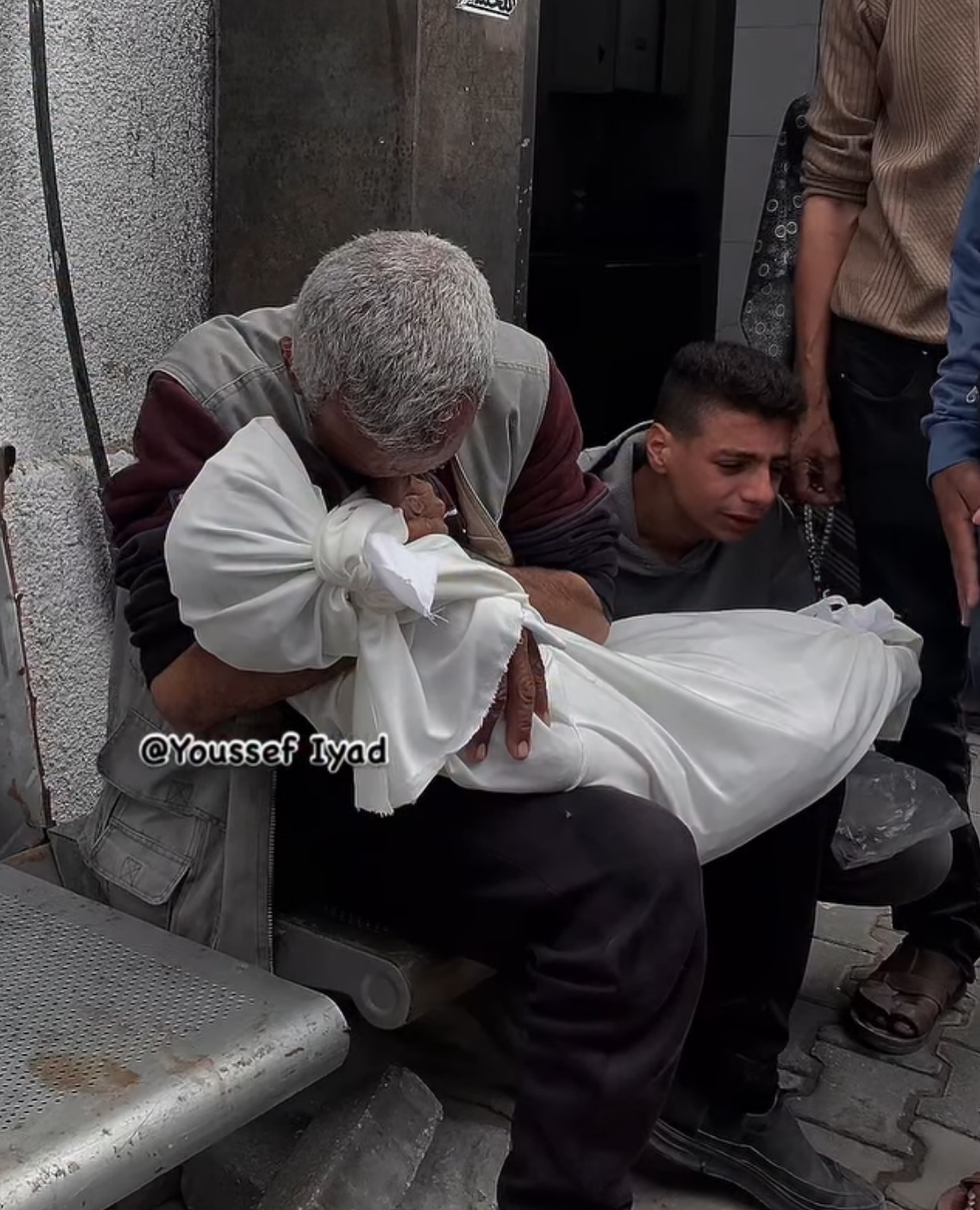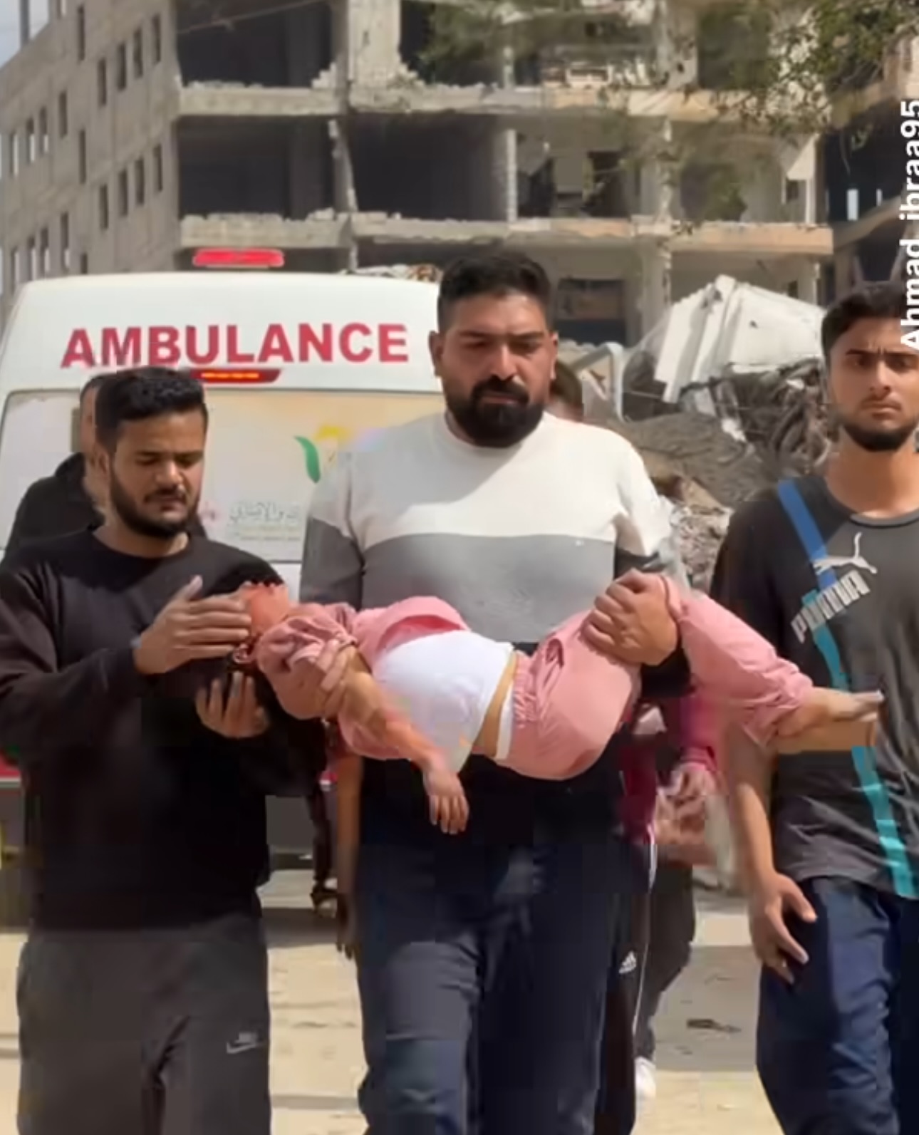 سوار عاشور، رضيعة لم تُكمل شهرها الخامس، وُلدت بملامح بريئة كأنها ملاك نازل من السماء، لكن الحصار والجوع وسوء التغذية سرقوا منها طفولتها في أيام… في الصورة الأولى كانت زهرة، في الثانية أصبحت ظلًا ناحلًا لجسد يُحتضر.. صدرها النحيل بارز كقفص من العظم، وملامحها اختفت تحت وجع المرض.. بين الصورتين أيام قليلة فقط، لكنها كانت كافية لتحوِّل حياة سوار إلى صراع يومي مع الموت.. أي ذنب اقترفته هذه الطفلة لتُعاقب بهذا الشكل؟ أنقذوا سوار، فأنفاسها تتناقص أمام أعيننا، ولا ترف للإنسانية جفن. Suwar Ashour, an infant not yet five months old, was born with an innocent face—like an angel sent from heaven. But siege, hunger, and severe malnutrition stole her childhood in mere days. In the first photo, she was a blooming flower; in the second, she has become a fragile shadow of a body clinging to life. Her tiny chest protrudes like a cage of bones, and her features have vanished beneath the pain of illness. Just a few days separate these two images—but they were enough to turn Suwar’s life into a daily struggle for survival. What crime has this child committed to be punished like this? Save Suwar—her breaths are fading before our eyes, and humanity remains unmoved.