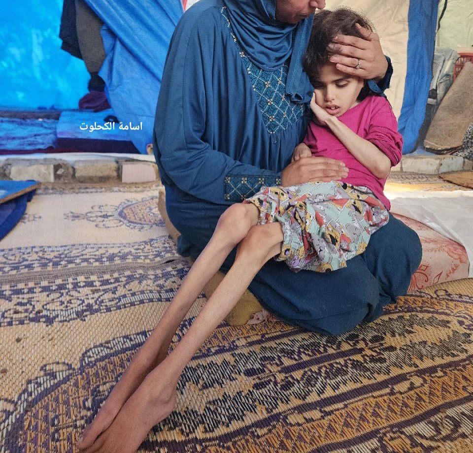 A child in Gaza shows her frail body due to starvation, while many other children suffer the same plight as a result of the ongoing siege. By @osama.kahlout طفلة في غـ ـزة يظهر جسدها النحيل بسبب المجاعة، في وقت يعاني فيه العديد من الأطفال من نفس المعاناة نتيجة الحـ ـصار المستمر.