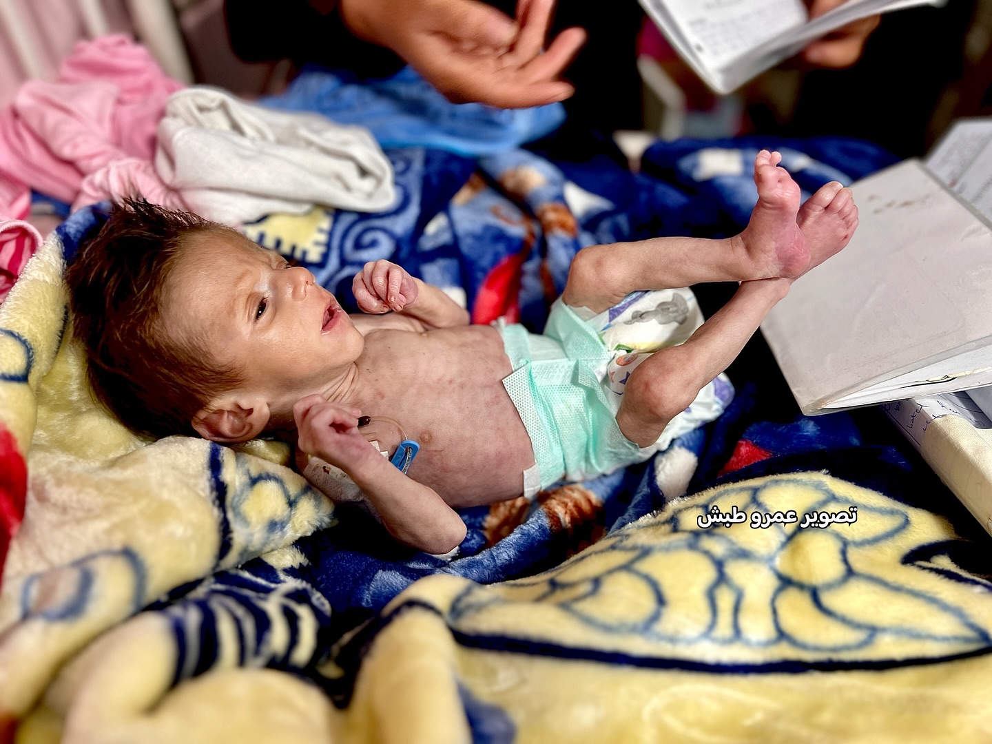 An infant, who should weigh around 6 kilograms at this age, now weighs only 1.5 kilograms. This devastating condition is the result of acute malnutrition caused by the ongoing blockade imposed on the Gaza Strip and the systematic prevention of food and medical supplies by the occupying forces. This is not just a health crisis — it is a humanitarian catastrophe unfolding in plain sight. By @haseebalwazeer رضيع من المفترض ان يكون وزنه 6 كيلو لكن وزنه الان كيلو ونصف بسبب سوء التغذية نتيجة الحصار المفروض على قطاع غزة و منع دخول الغذاء و الدواء من قبل الاحتلال.