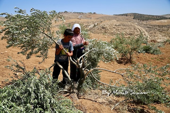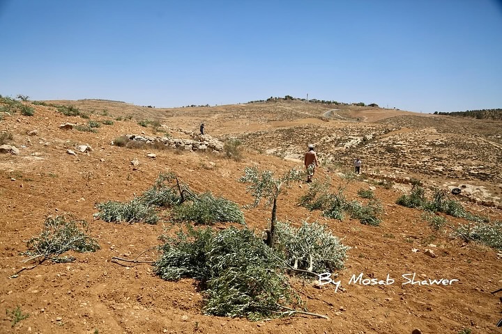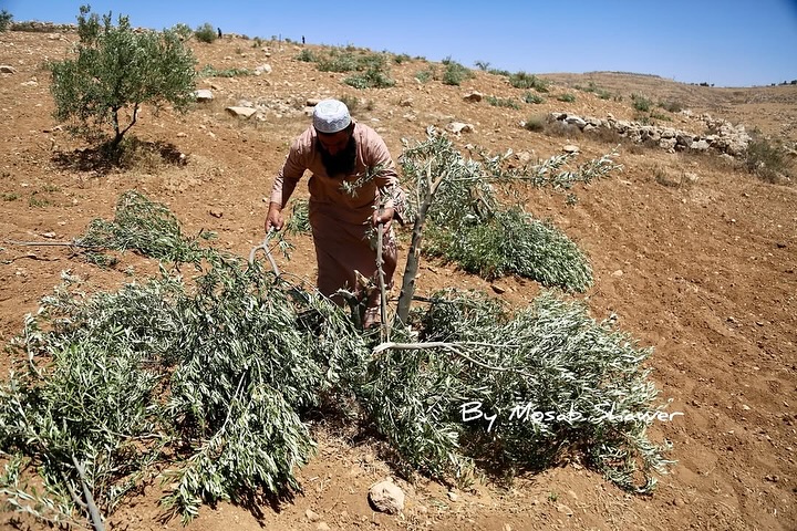 Palestinians inspect their olive trees (Around 100 trees) which were cut down by settlers in the Masafer Yatta area, south of Hebron. By @mosab.shawer فلسطينيون يتفقدون تقطيع المستوطنون نحو 100 شجرة زيتون في منطقة الحوارة بمسافر يطا جنوب الخليل