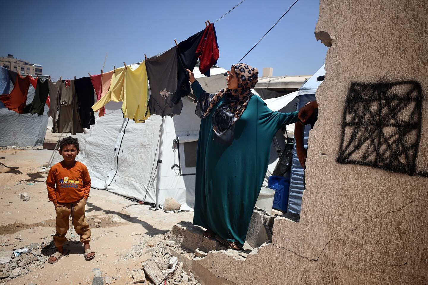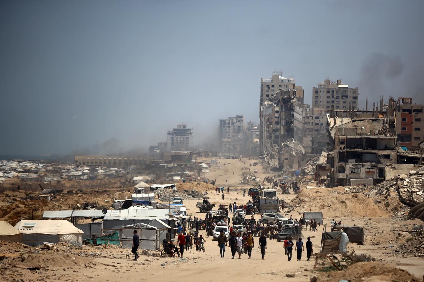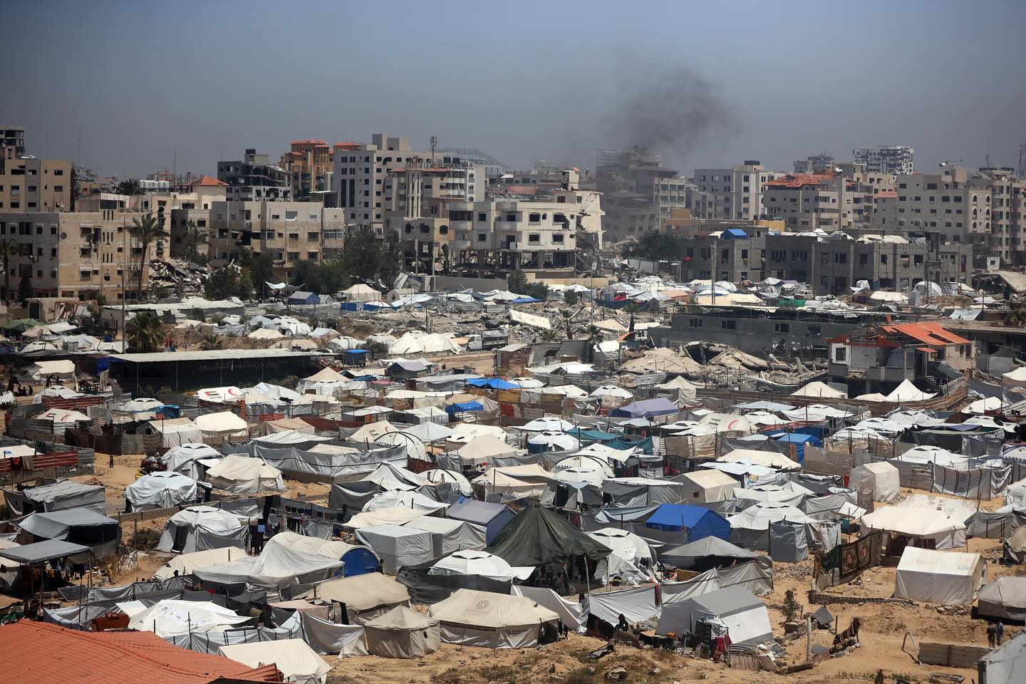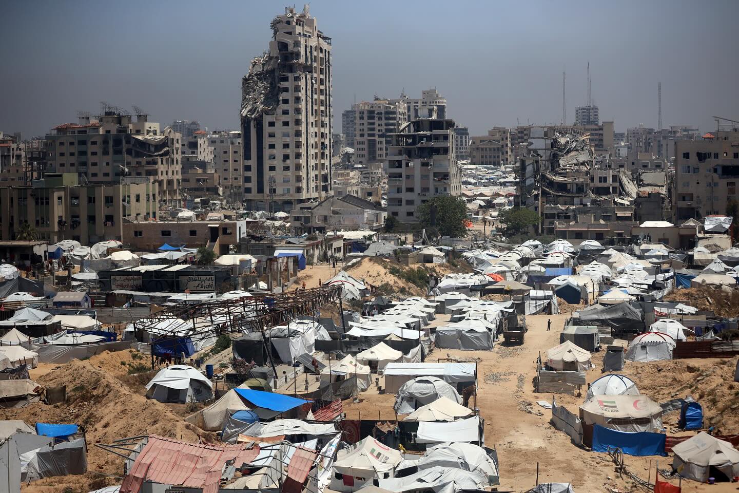 Tents are set up as temporary shelters for displaced Palestinians along the coastline of Gaza City on May 25, 2025. Photo by majdi fathi