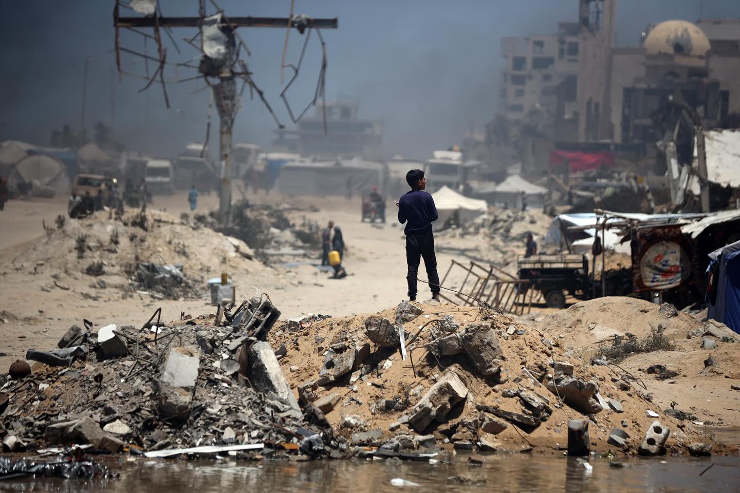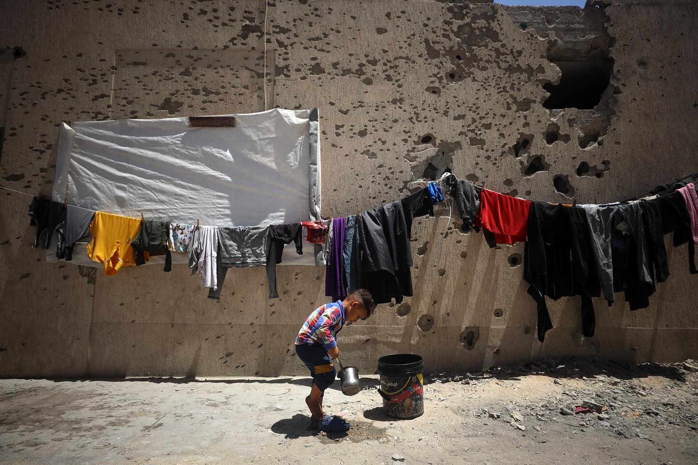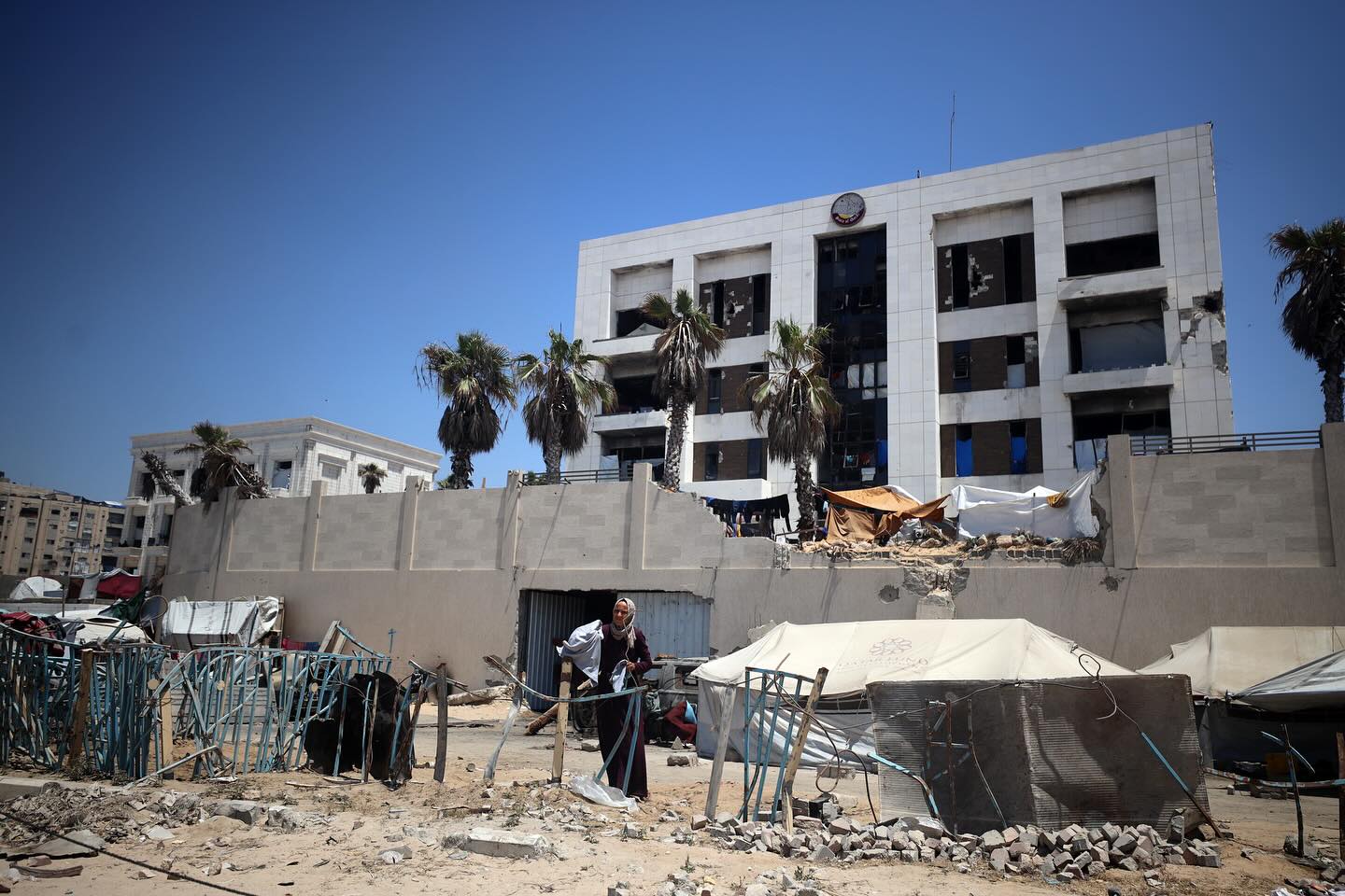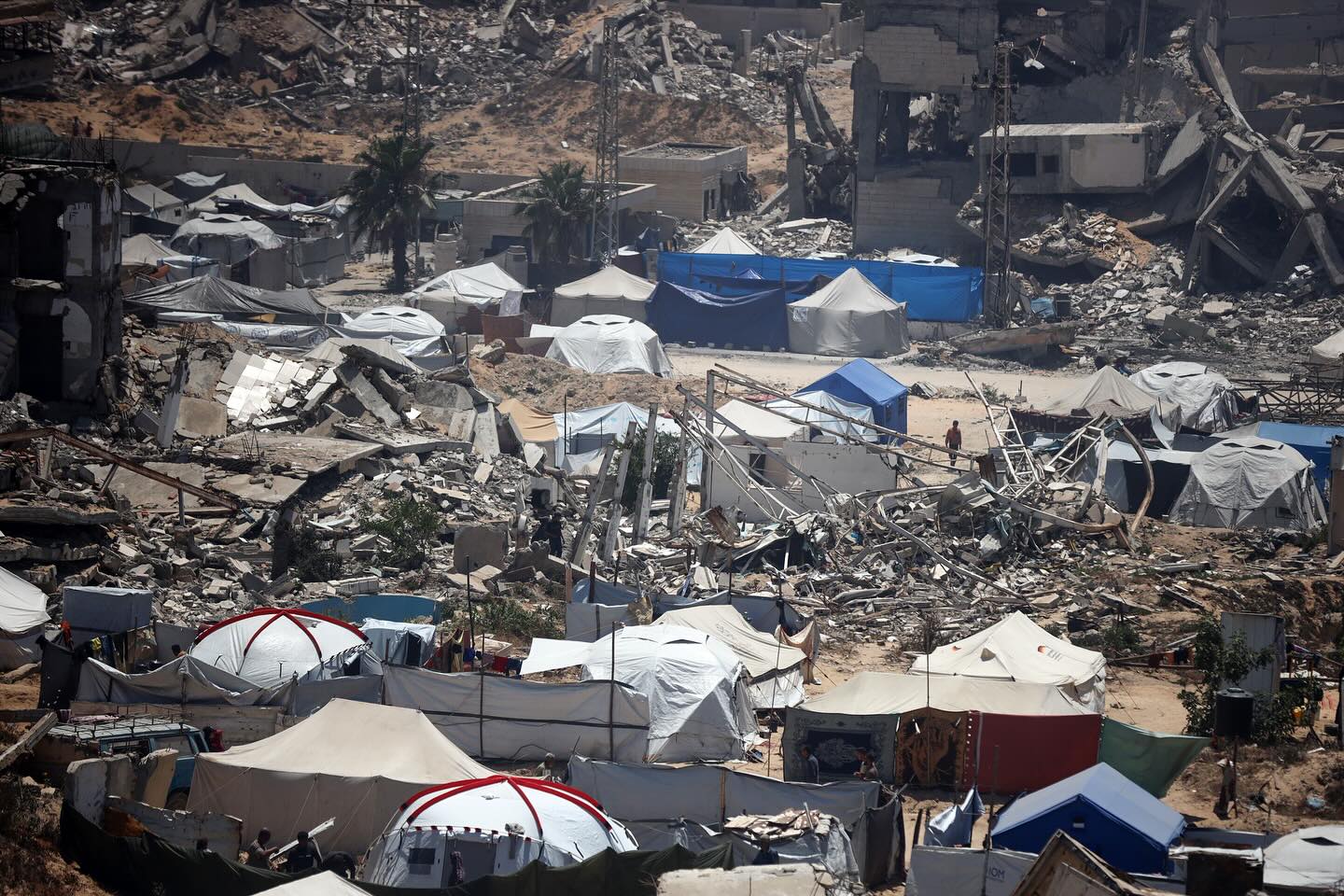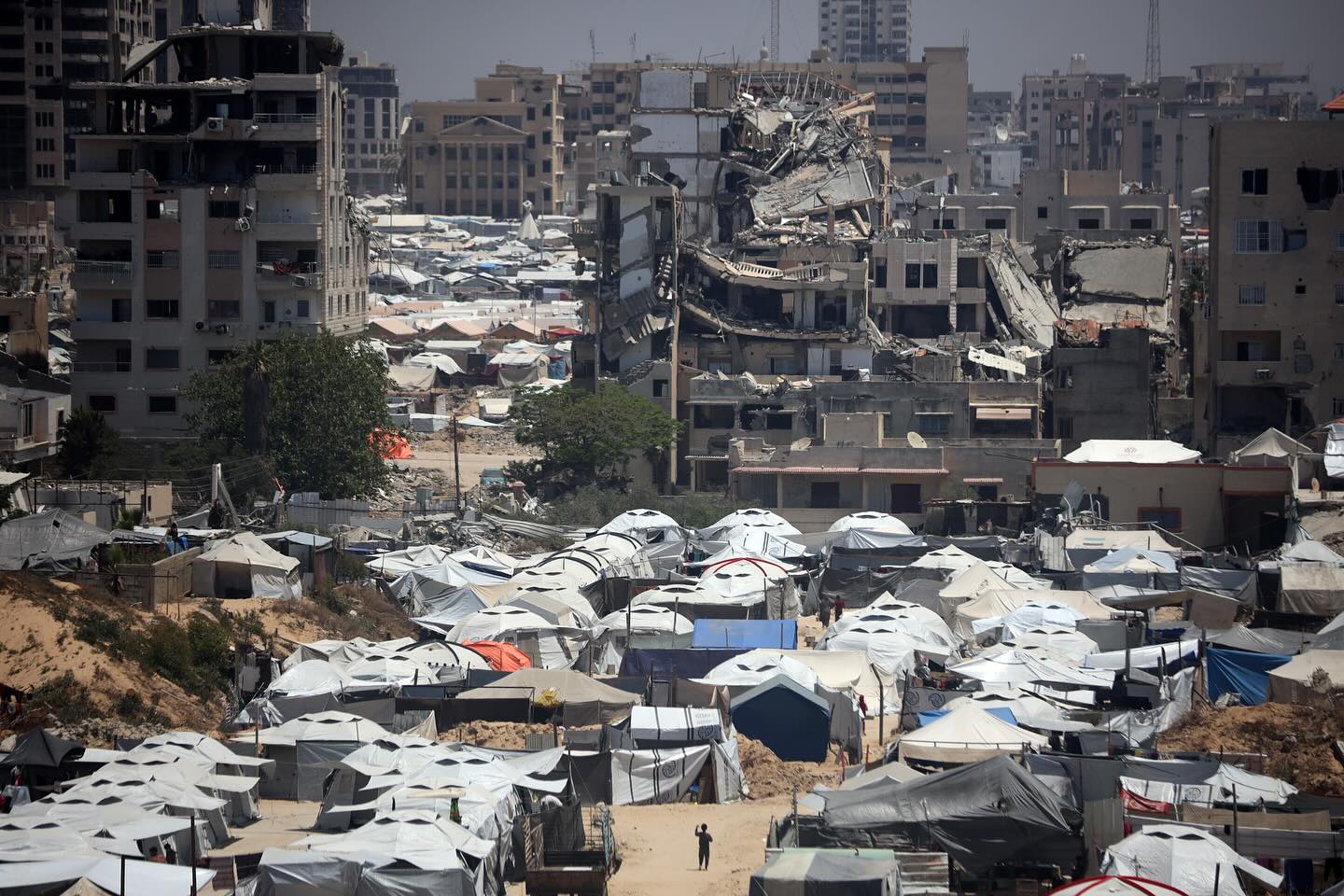 Tents are set up as temporary shelters for displaced Palestinians along the coastline of Gaza City on May 25, 2025. Photo by majdi fathi
